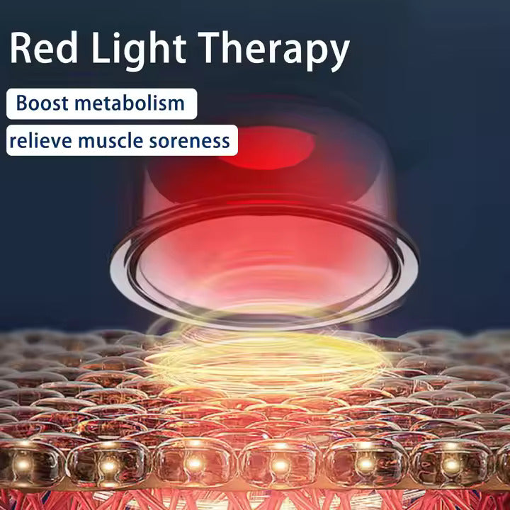 Ans- It uses adjustable negative pressure suction and red light heating therapy to promote blood circulation, relax muscles, and relieve pain. The smart interface allows you to customize suction and heat levels for a personalized massage experience.